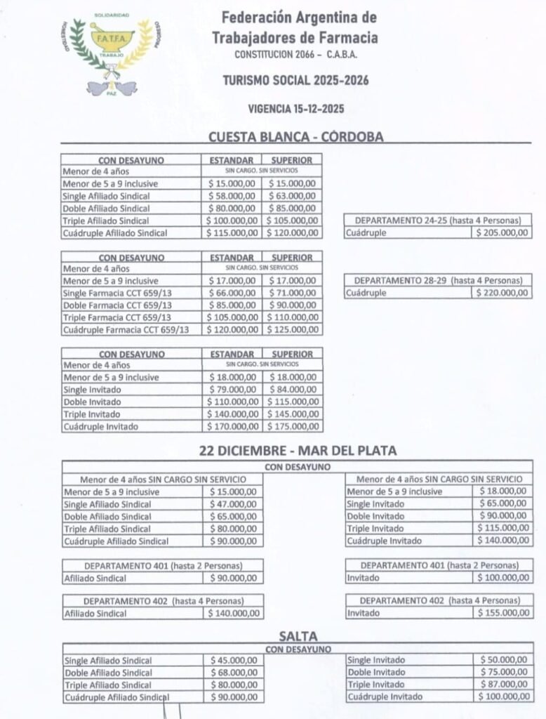 Turismo HOTELES DE LAS Y LOS TRABAJADORES DE FARMACIA. Descansar y disfrutar del tiempo libre es fundamental para la salud y el bienestar de las y los trabajadores. Por eso, ofrecemos el Turismo Sindical, diseñado para que puedas ejercer tu derecho a las vacaciones, de manera accesible y económica. Tarifas